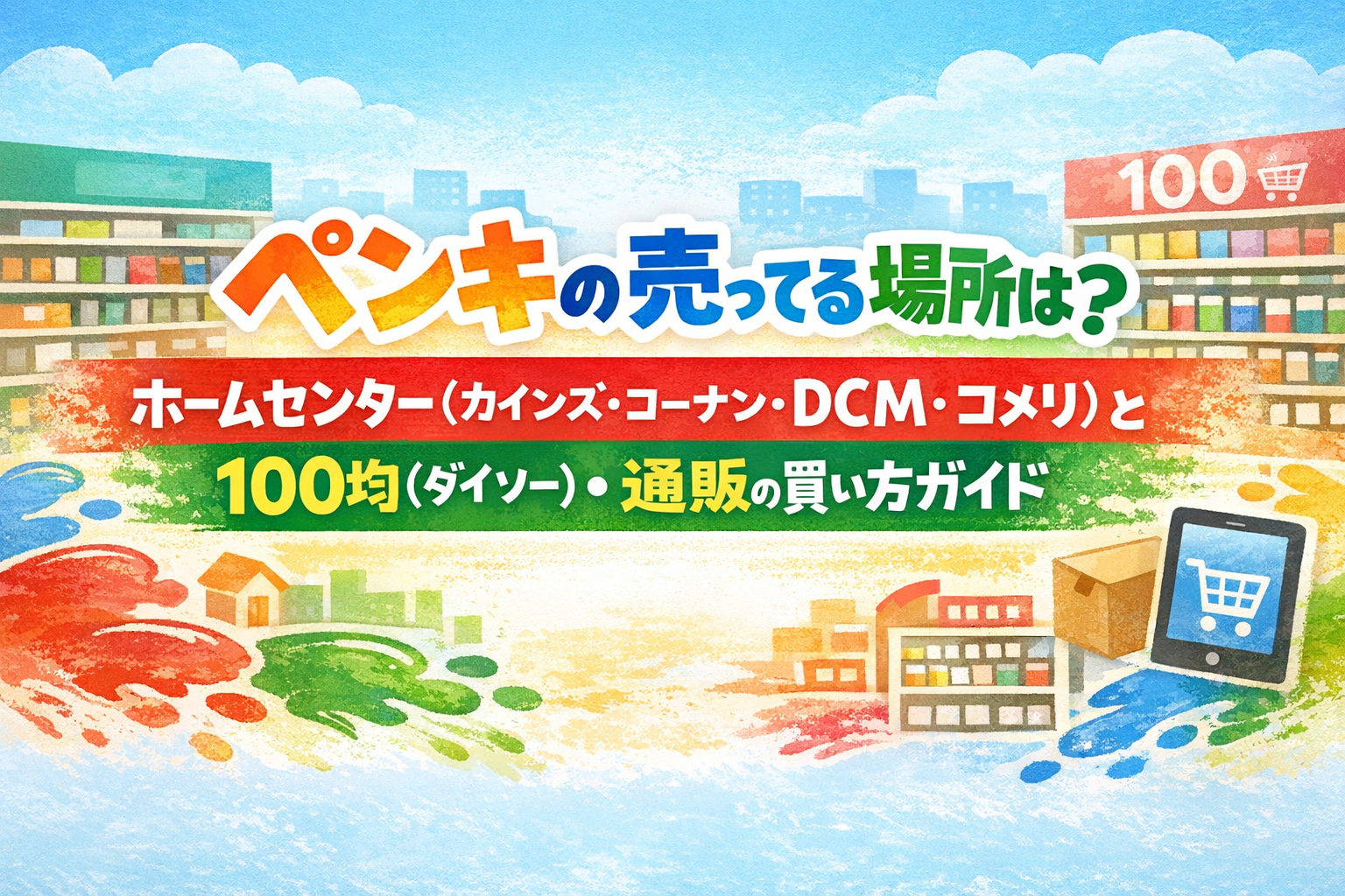 - 結論:ペンキの売ってる場所は「ホームセンター」→「100均(少量)」→「通販」で探すと早い