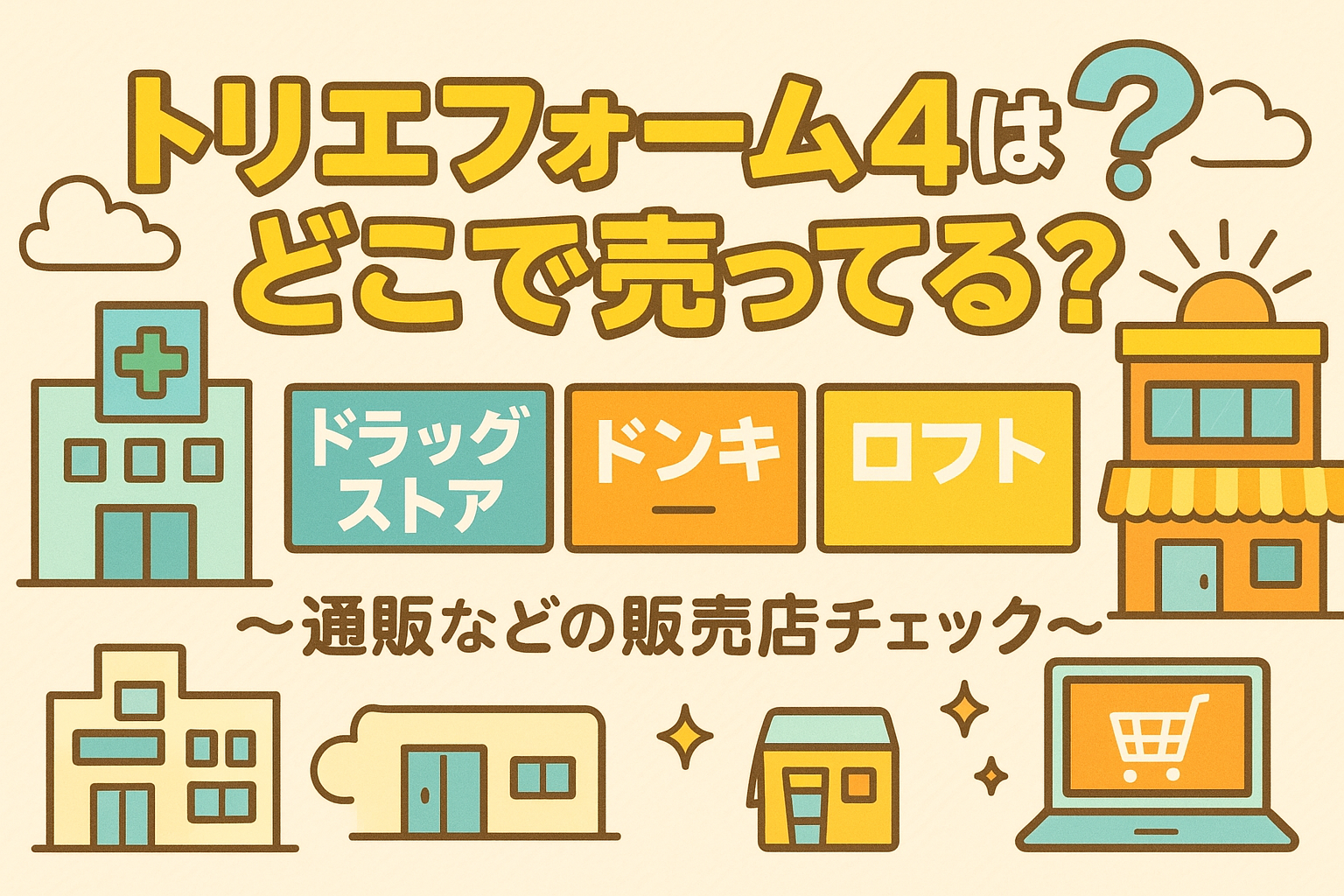 「トリエフォーム4はどこで売ってる?」「ドラッグストアやドンキ、ロフトを見たけれどなかなか見つからない」そんな悩みを持つ人は少なくありません。